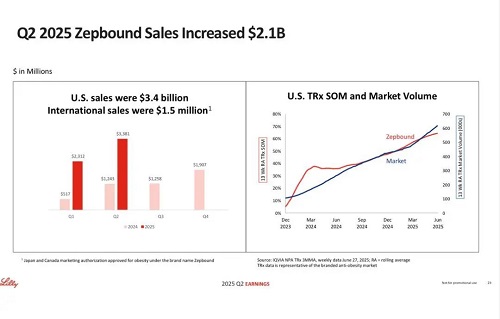 在中国市场,司美格鲁肽降糖版 "诺和泰" 于 2021 年 4 月上市,减重版 "诺和盈" 于 2024 年 11 月上市(中国首个 GLP-1 减重周制剂),2025 年一季度中国区收入 3.18 亿美元(同比增长 22%),其中 "诺和盈" 贡献近 1 亿美元,占比近三分之一。