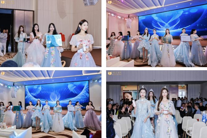 在全场期待中,十二位亚洲小姐手持雅兰33周年代表产品登台亮相。她们步履从容,在光影中以产品为载体,立体演绎雅雅蘭33年的进化之路。第一轮:经典永驻,经典产品见证品牌初心与科技基石;第二轮:当代革新,黑科技单品在光影中,将前沿创新诠释为瞩目的美学表达;第三轮:谷动未来,以生物合成技术前瞻布局,妆械联合,引领风尚。呈现了雅蘭从技术融合到体验升级的战略脉络清晰呈现,每一款熠熠生辉的产品,都是其引领时代的自信注脚。