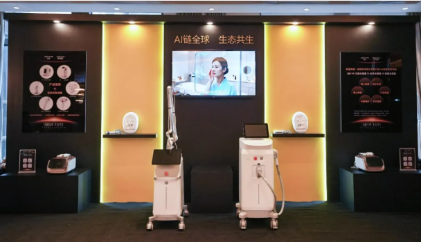 “明日像素”品牌业务涵盖医美设备、医美产品、AI+医美解决方案及智慧医美机构建设,自研AI系统可实现皮肤检测、院线治疗、居家养护全链路设备串联,打破行业设备孤