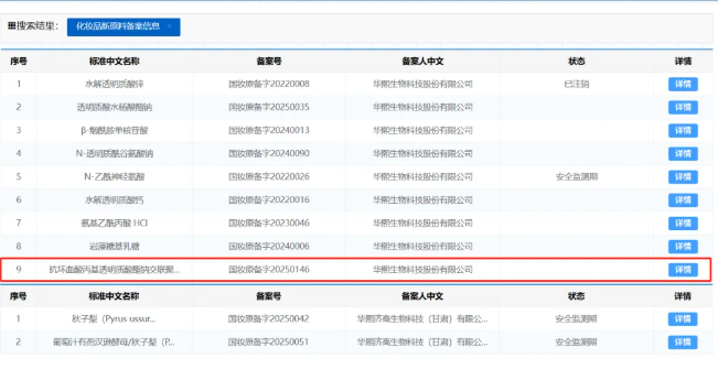 2025年11月19日,国家药监局化妆品新原料备案信息显示,华熙生物科技股份有限公司(下文简称:华熙生物)的抗坏血酸丙基透明质酸酯钠交联聚合物(备案号:国妆原备字20250148)完成化妆品新