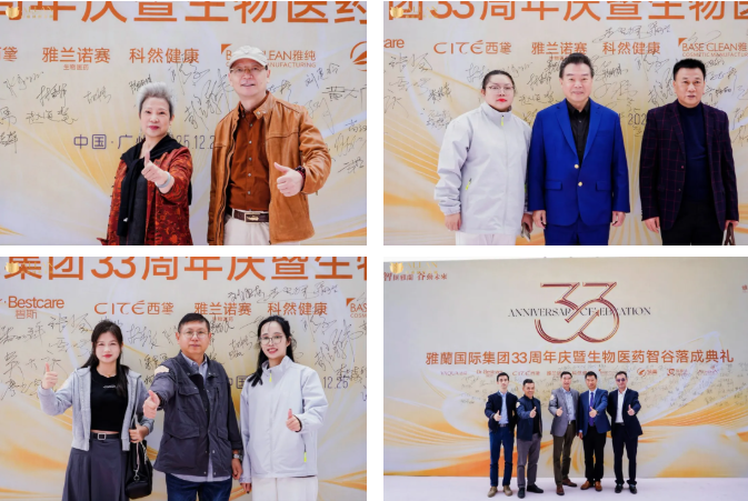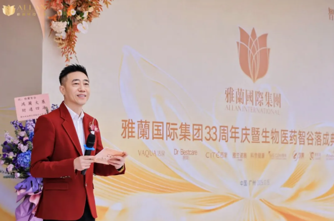 雅蘭国际健康美容集团总裁、全国工商联会美容化妆品商会副会长、广东省美协副会长何毅彬致辞,回顾 33 年发展,强调生物医药智谷落成是里程碑。该智谷规模宏大、功能多元,将夯实集团大健康转型基础。并致谢政府与建设者,智谷是 33 周年献礼与责任承诺;未来集团将聚焦生物医药与国妆融合,以新质生产力驱动产业升级。