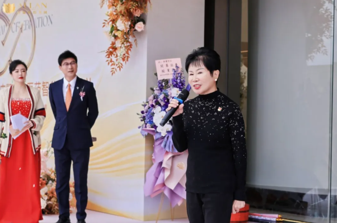 全国工商联美容化妆品业商会名誉会长、中国国际美博会创始人、广东省美容美发化妆品行业协会会长马娅女士登台致辞,她感慨于何董从白手起家到如今智谷落成的创业征程,盛赞品牌多年来的坚守与突破,并寄望雅蘭以此次智谷落成为新起点,在行业浪潮中持续进阶、再启新篇,真挚寄语引发全场热烈氛围。