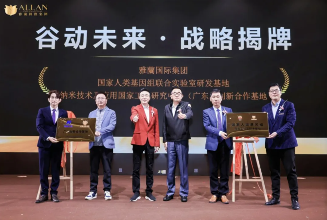 在全体嘉宾的共同见证下,雅蘭国际集团何董、刘总及尹全尹主任携手多家权威科研机构与产业伙伴,共同为多项创新合作平台隆重揭牌。现场依次揭幕了包括“国家人类基因组联合实验室研发基地”(与国家人类基因组联合实验室转化平台——北京诺赛国际医学研究院联合设立)、“国纳之星—雅兰国际(广东)创新合作基地”(与纳米技术及应用国家工程研究中心的科技转化平台——国纳之星(上海)纳米科技发展有限公司联合设立)、“植物细胞工程技术研究中心”(与中植(山东)生物技术有限责任公司联合设立),以及“联合创新中心”(与山东一方制药有限公司联合设立)。这一系列重要揭牌,标志着雅蘭在产学研深度融合与跨界协同方面迈出坚实步伐,进一步强化了其在生物医药与大健康领域的研发生态布局。