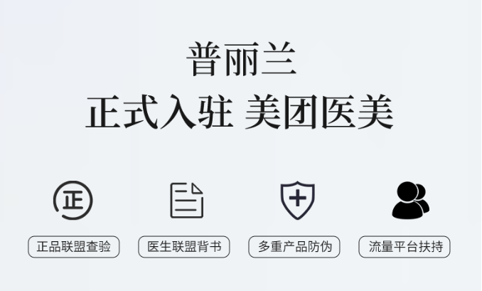 普丽兰品牌与美团·医美深度合作,开设线上品牌馆,即将入驻千家合作机构,借美团平台的强大流量提供更多本土曝光机会,同时加入正品联盟,进行服务全流程追踪,让求美者的选择、