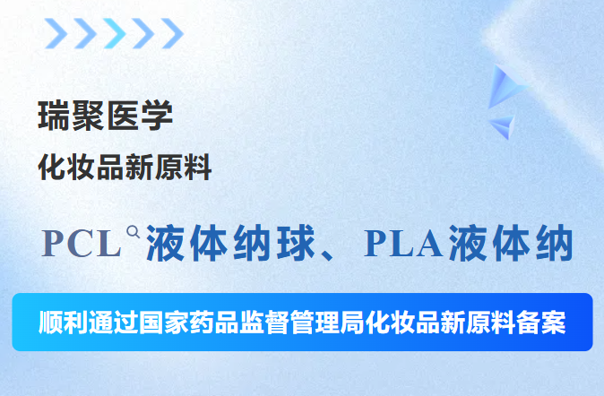 瑞聚医学自主研发的PCL液体纳球、PLA液体纳球近日通过国家药监局化妆品新原料备案,是其新一代液体童颜技术的核心原料,兼具胶原促生与透皮递送双重功效,可实现功效成分的高效递