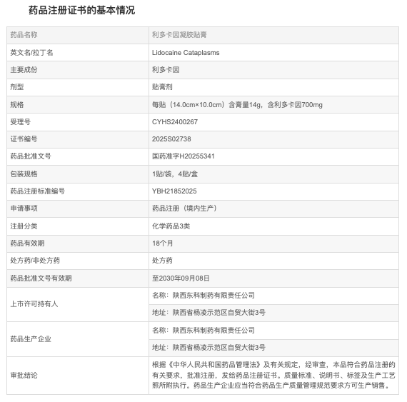 医美新品|东科制药旗下“利多卡因凝胶贴膏”成功获批